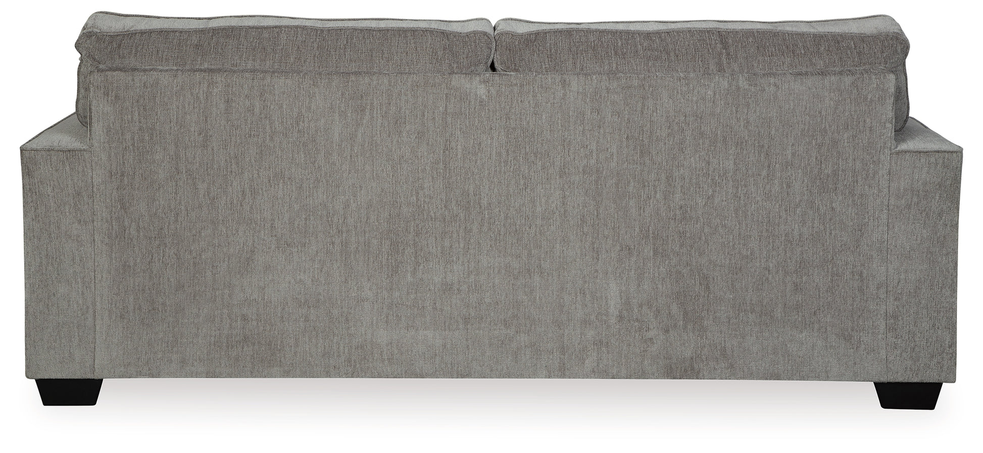 If style is the question, then this striking sofa is the answer. Sporting clean lines and sleek track arms, the decidedly contemporary profile is enhanced with plump cushioning and a chenille-feel upholstery that's so pleasing to the touch. Sure to play well with so many color schemes, this sofa in richly neutral alloy includes a pair of understated floral pattern pillows for fashionably fresh appeal.