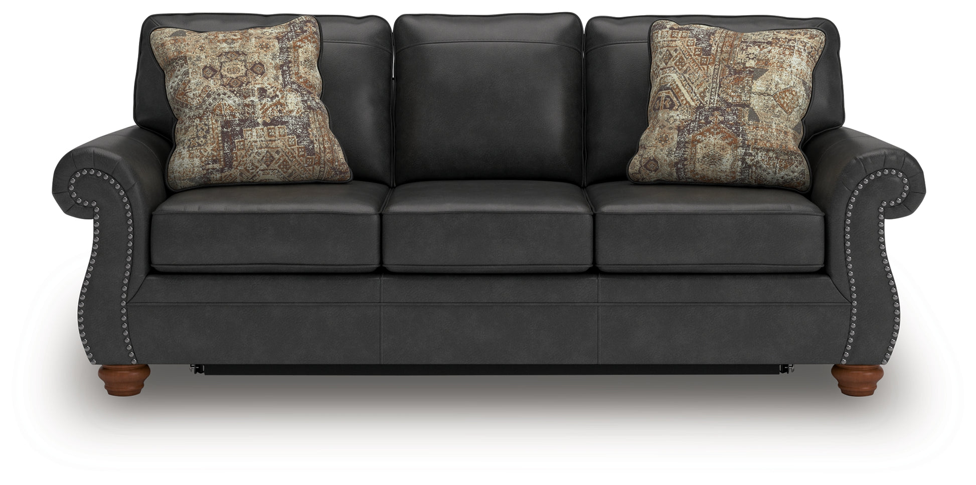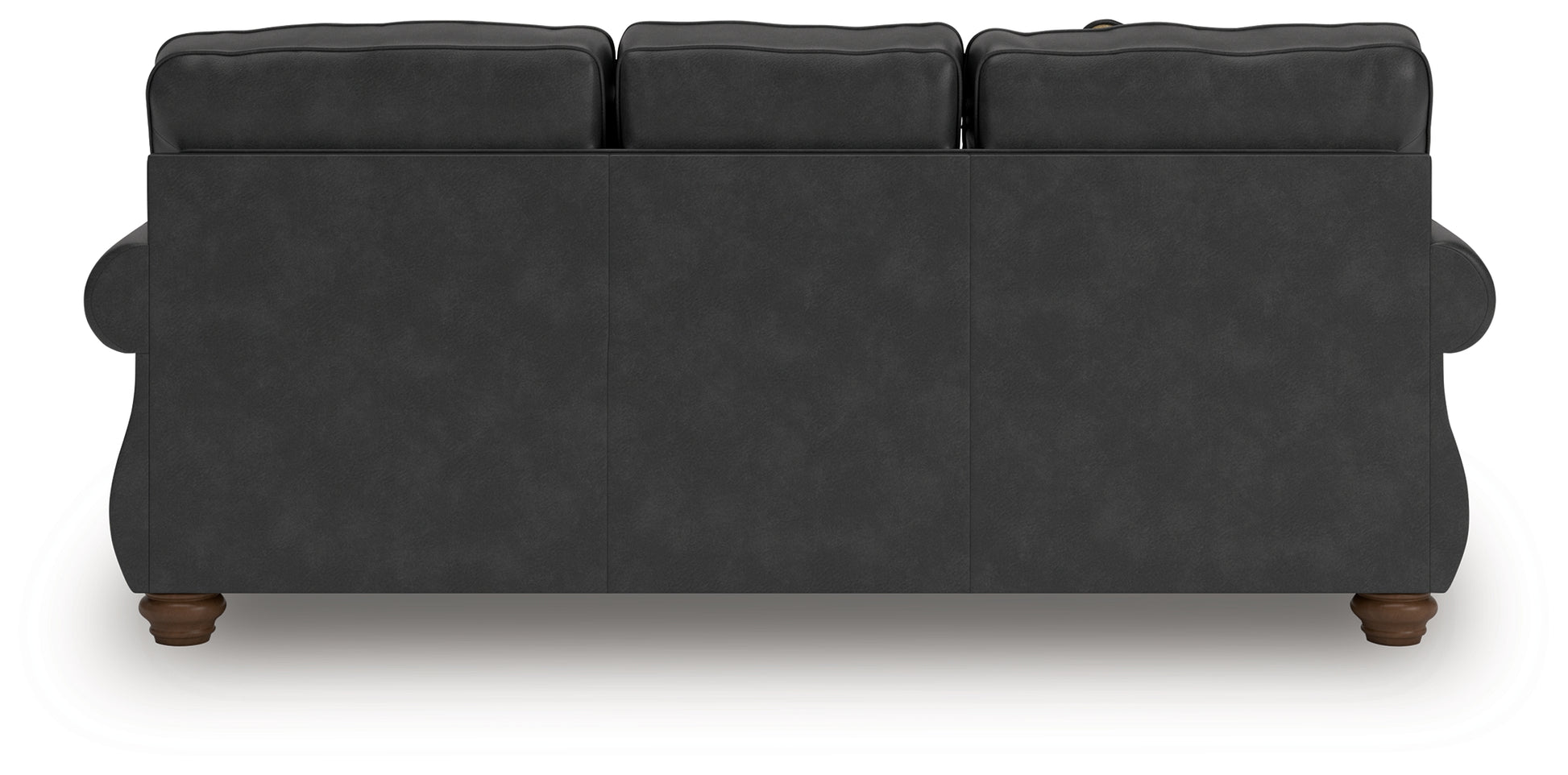 Everyone can have the best seat in the house with this loveseat. Its nailhead trim puts the finishing touches on the traditional roll arms you love. Comfy, durable cushions—wrapped in a rustic yet sophisticated faux leather—keep you feeling relaxed. Chenille pillows in a distressed motif pattern add another layer of comfort. And the loveseat's turned legs show that style and quality flow from top to bottom.
