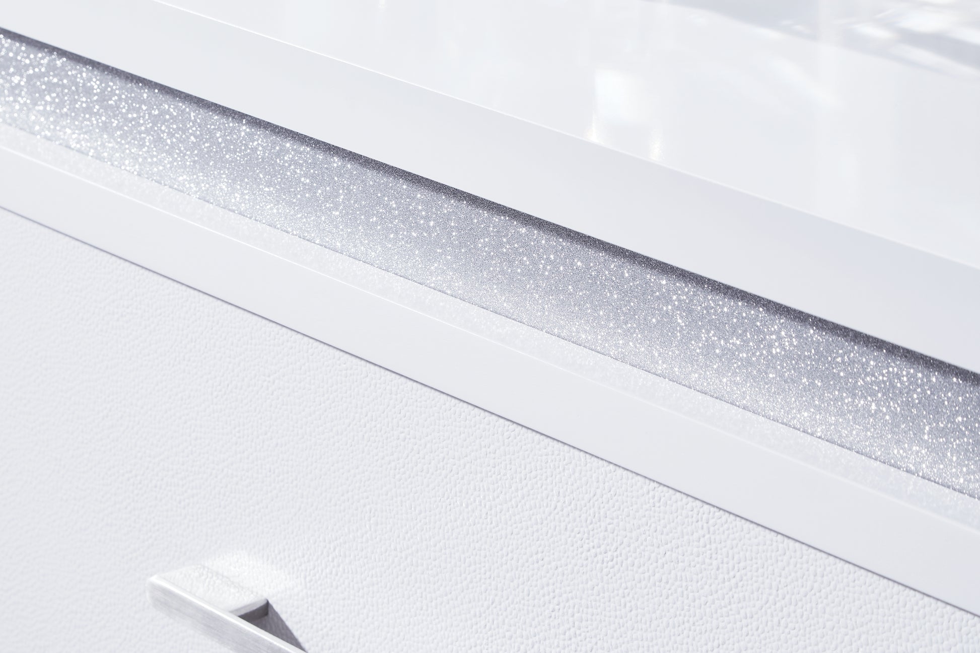 This dresser is a showstopper, bringing a touch of modern glamour to your sanctuary. A sleek white finish and inset glitter accents create a sophisticated feel, while spacious drawers provide practical storage. It’s a simply stunning way to achieve the bedroom of your dreams.
