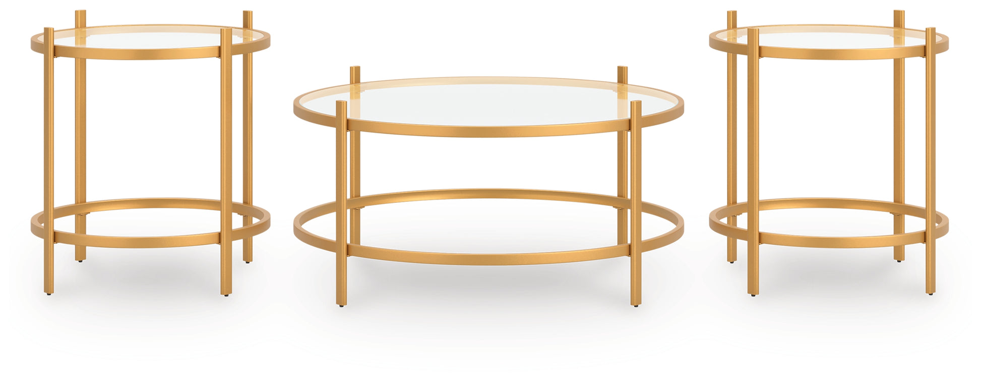 Chic and sleek, this table set satisfies your taste for casual contemporary design. The luxurious goldtone frames and glass tops exemplify simple sophistication. Adorn these tables with an array of art books, fresh flowers and chic trinkets for a stunning style statement.